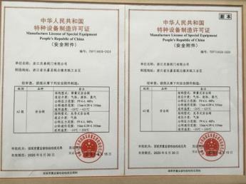3、安全附件制造气压应具备健全、有效的产品质量管理体系,安全附件制造的各主要环节,如设计、材料、焊接、无损检验、机械加工、热处理、压力试验、产品检验、计量等,须有相关人员负责,确保产品质量符合中国相关法规、标准对安全附件性能的要求。