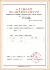 1. 凡是在我国境内从事压力容器安装、改造、维修工作的单位,应当取得国家质量监督检验检疫总局(以下简称国家质检总局) 或者省级质量技术监督局颁发的《特种设备安装改造维修许可证》(以下简称许可证) 。