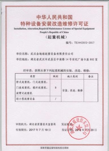 代办缆索式起重机制造许可证