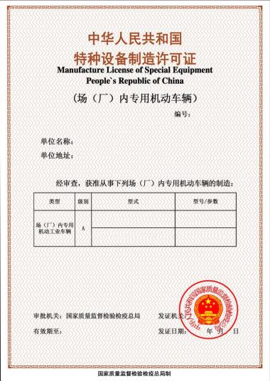 代办升降机制造许可证